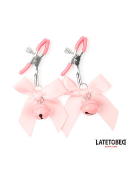 El placer y la elegancia se dan la mano con estas pinzas para pezones. Cuentan con unos detalles increíblemente románticos, unos lazos en seda rosa y unos cascabeles en la punta.