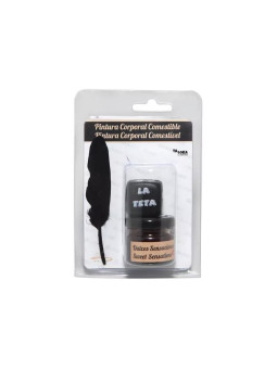 Bote de pintura comestible sabor chocolate saludable. Cuenta con un pincel y un dado con las partes del cuerpo.